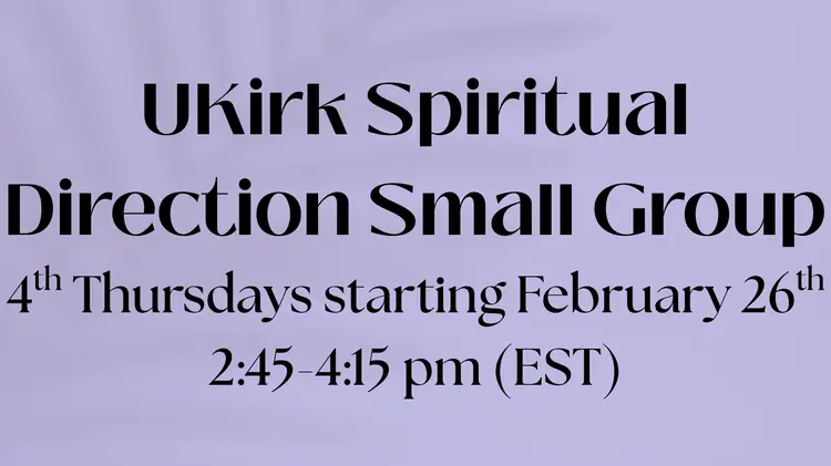 We are excited to offer another opportunity for 4-5 UKirk Network ministers to join together for a monthly virtual spiritual direction small group experience on the 4th Thursdays of the month from 2:45-4:15 Eastern Time. This group will meet on February 26th, March 26th, April 23rd, and May 28th. If