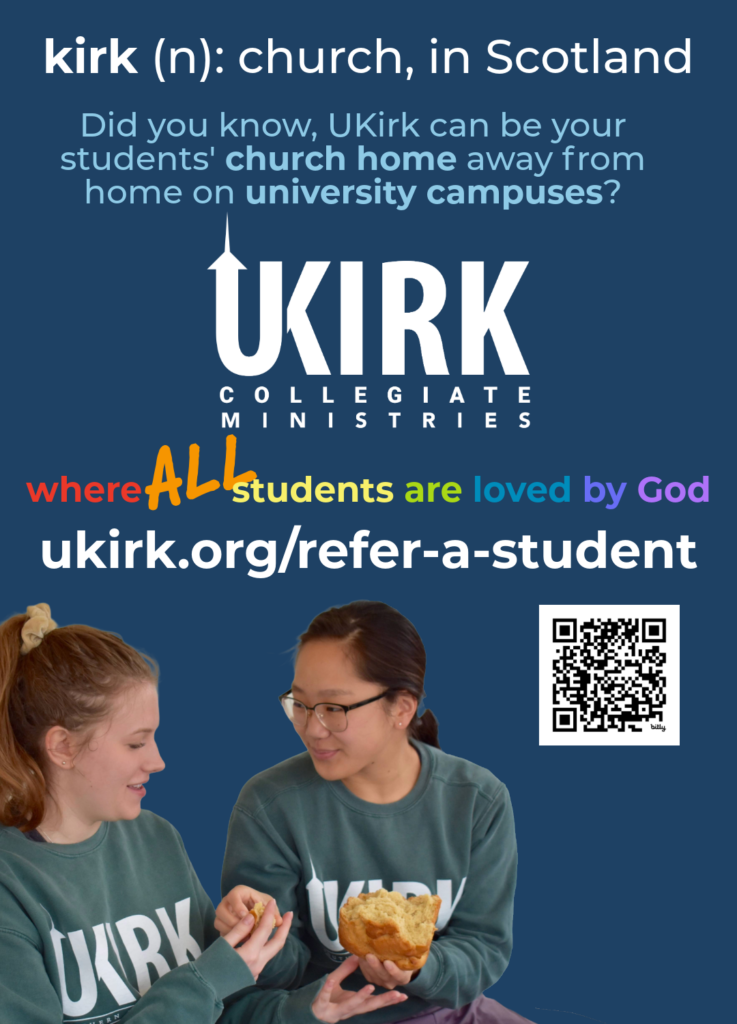 Do you ever get asked what UKirk stands for – both as a word and as a campus ministry? We will be sharing some ideas and graphics over the next few months that you can use or adapt in your context to help students and churches quickly grasp a little bit about our network’s name and identity.